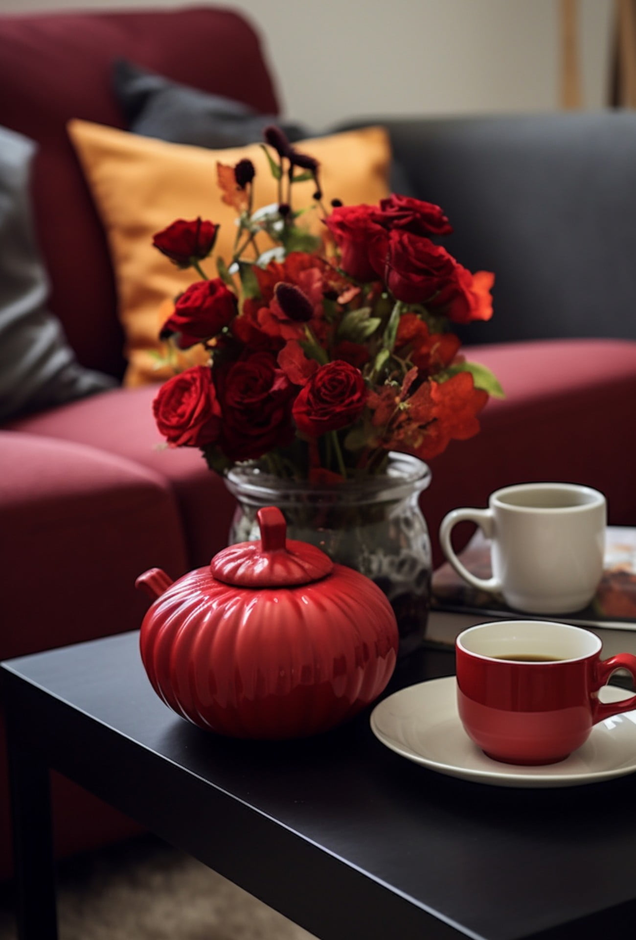 Poltrone in velluto rosso, cuscini o tende possono essere valorizzati con vasi in ceramica, candelabri o poster artistici dai motivi rossi. Gli elementi in vetro o oro aggiungono profondità e raffinatezza allo spazio.