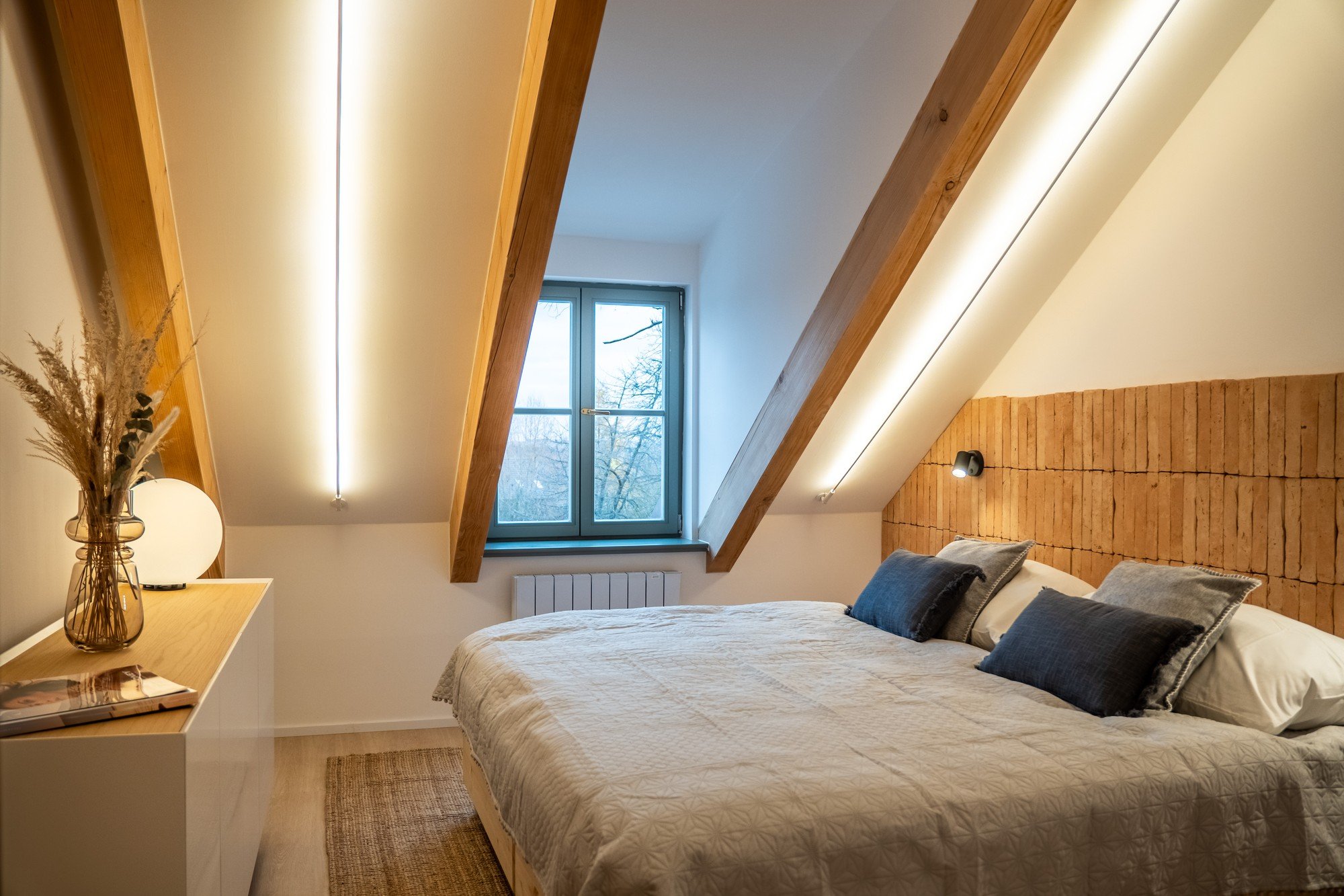 Progettare gli interni di un edificio storico protetto significa trovare un equilibrio delicato tra passato e presente. I primi due appartamenti in questo edificio sono stati pensati per soggiorni di breve durata, dove rallentare, riposarsi e vivere momenti speciali come la prima notte di nozze. Puoi scoprire il risultato finale della ristrutturazione in questo articolo e prendere ispirazione per il tuo attico.