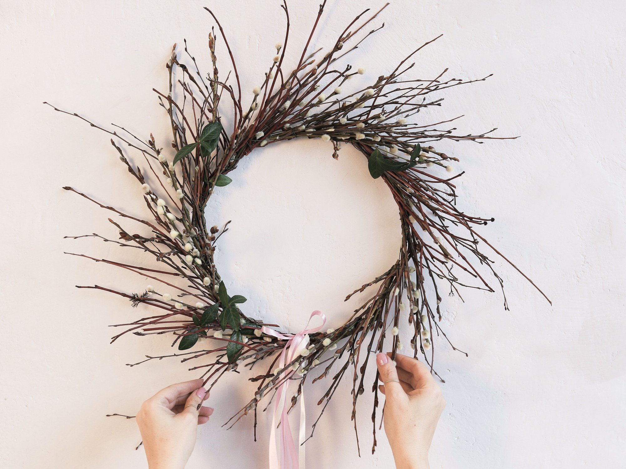 Tutto l'occorrente per una ghirlanda primaverile con l'eucalipto.
