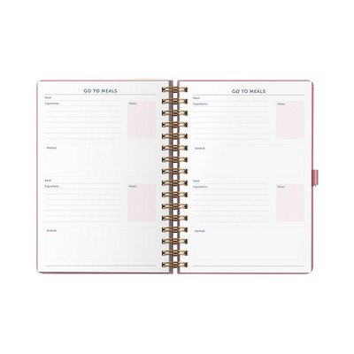L'agenda copre 17 mesi, da agosto a dicembre dell'anno successivo. Consente la pianificazione settimanale in un doppio calendario, separatamente per il lavoro e per la casa. Una pratica tasca consente di tenere insieme gli appunti importanti o i biglietti da visita per non perderli.