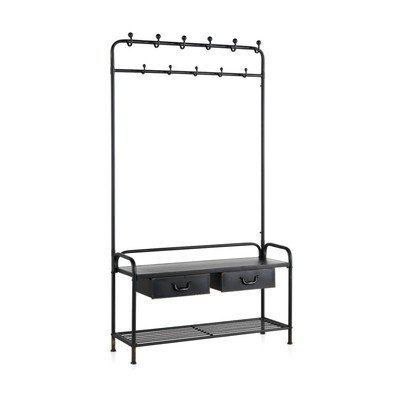 Set di mobili da ingresso GeromeIn metallo, trattamento della superficie: distress, con trama opaca, nero, larghezza totale 104 cm, altezza totale 185 cm, profondità totale 35 cm