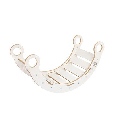 Arco a dondolo montessori MontessoriCon scivolo, in pino massiccio, bianco, 39x75 cm, altezza totale 38 cm