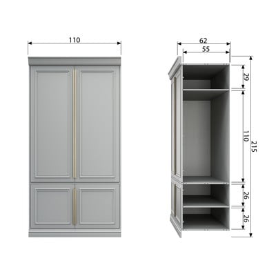 In pino massiccioTrattamento della superficie: laccatura/trattamento della superficie: spazzolaturaGrigio chiaroLarghezza totale 110 cmAltezza totale 215 cmProfondità totale 62 cm