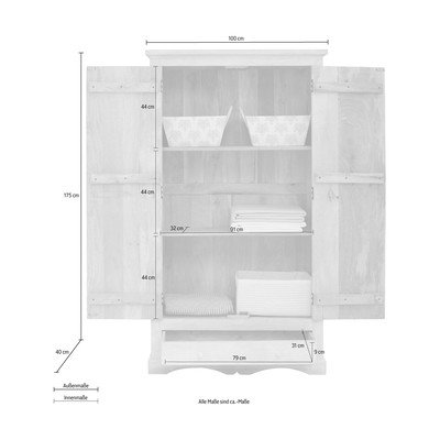 In mango massiccioTrattamento della superficie: laccaturaBiancoLarghezza totale 100 cmAltezza totale 175 cmProfondità totale 40 cm