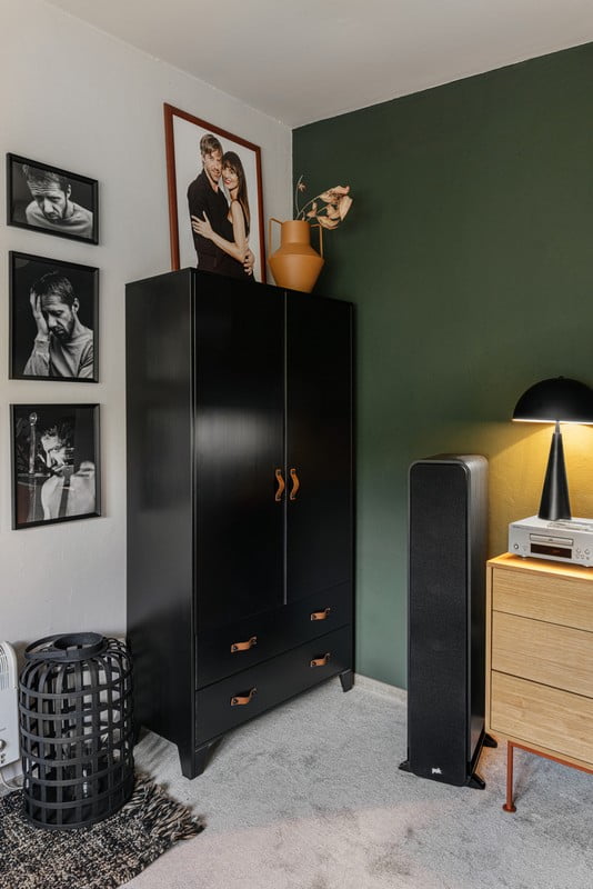 In pino massiccioTrattamento della superficie: verniciatura colorataCon trama opacaNeroLarghezza totale 94 cmAltezza totale 180 cmProfondità totale 40 cm