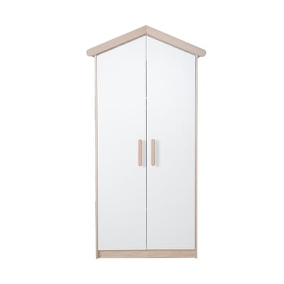 Dietro le due ante con chiusura ammortizzata, si trovano due ripiani variabili e una barra appendiabiti che offrono ampio spazio per riporre i vestiti.