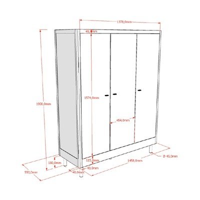 In faggio massiccioTrattamento della superficie: verniciatura colorataBiancoLarghezza totale 146 cmAltezza totale 190 cmProfondità totale 55 cm