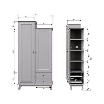 In pino massiccio, grigio chiaro, larghezza totale 98 cm, altezza totale 190 cm, profondità totale 41 cm