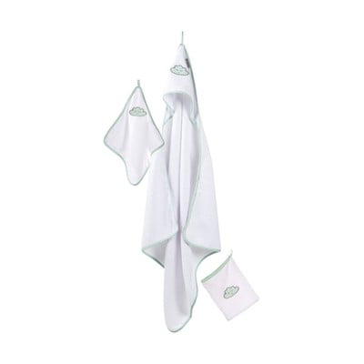 Il set di asciugamani Happy Cloud del brand Roba è ideale per la cura del bambino. Il set comprende un asciugamano con cappuccio (80 x 80 cm), un asciugamano piccolo (30 x 30 cm) e una salvietta (16 x 20 cm).