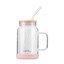 È inclusa un'elegante cannuccia in vetro che si consiglia di maneggiare con cura perché fragile dato il materiale. Il barattolo, invece, realizzato in resistente vetro borosilicato e mantiene la sua stabilità grazie alla base in plastica.