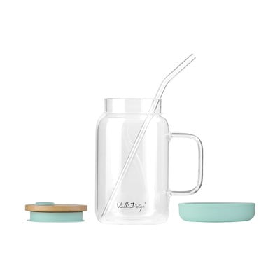 È inclusa un'elegante cannuccia in vetro che si consiglia di maneggiare con cura perché fragile dato il materiale. Il barattolo, invece, realizzato in resistente vetro borosilicato e mantiene la sua stabilità grazie alla base in plastica.