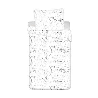 Set copripiumino e federa MarblePer letto singolo, con chiusura con cerniera, senza stiratura/per l'inverno, in microflanella, con fantasia astratta, bianco e nero, 140x200 cm