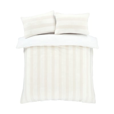 Set copripiumino e federa Stripe FurPer letto matrimoniale/per letto esteso, con chiusura con bottoni, senza stiratura/per l'inverno, in micropile, con fantasia a strisce, color crema, 230x220 cm