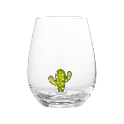 Il fondo del bicchiere presenta un adorabile cactus, che gli conferisce un carattere unico e festoso. Ogni vaso è soffiato a mano, con lievi variazioni che rendono ogni pezzo unico. Il volume del vaso è di 560 ml.