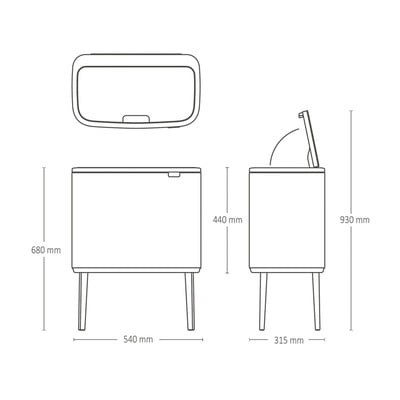 Il design compatto fa sì che il cestino possa essere inserito in spazi ridotti, ad esempio vicino alla parete o in un angolo. I piedini a scatto con fondo antiscivolo regolabile lo elevano anche, salvando la schiena e facilitando le operazioni di pulizia sotto di esso.