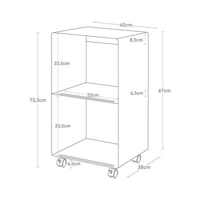 In metalloBiancoLarghezza totale 40 cmAltezza totale 73 cmProfondità totale 38 cm