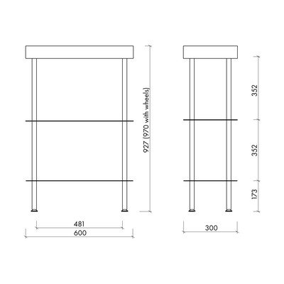 In metalloNeroLarghezza totale 60 cmAltezza totale 97 cmProfondità totale 30 cm