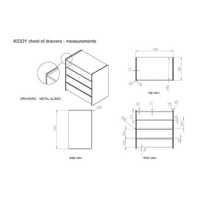 La cassettiera per bambini Kiddy vi piacerà grazie al suo design funzionale, che si può facilmente abbinare a interni scandinavi o moderni. Offre un ampio spazio di archiviazione. Inoltre, potete decorarla con una decorazione, un peluche o il libro preferito del vostro bambino.