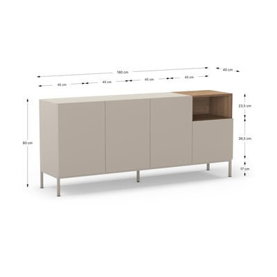 In MDF, trattamento della superficie: melamina, color crema, larghezza totale 180 cm, altezza totale 80 cm, profondità totale 42 cm