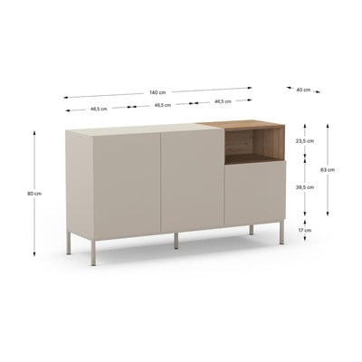 Cassettiera CailinCon effetto rovere, in MDF, trattamento della superficie: melamina, di colore naturale, larghezza totale 140 cm, altezza totale 80 cm, profondità totale 42 cm