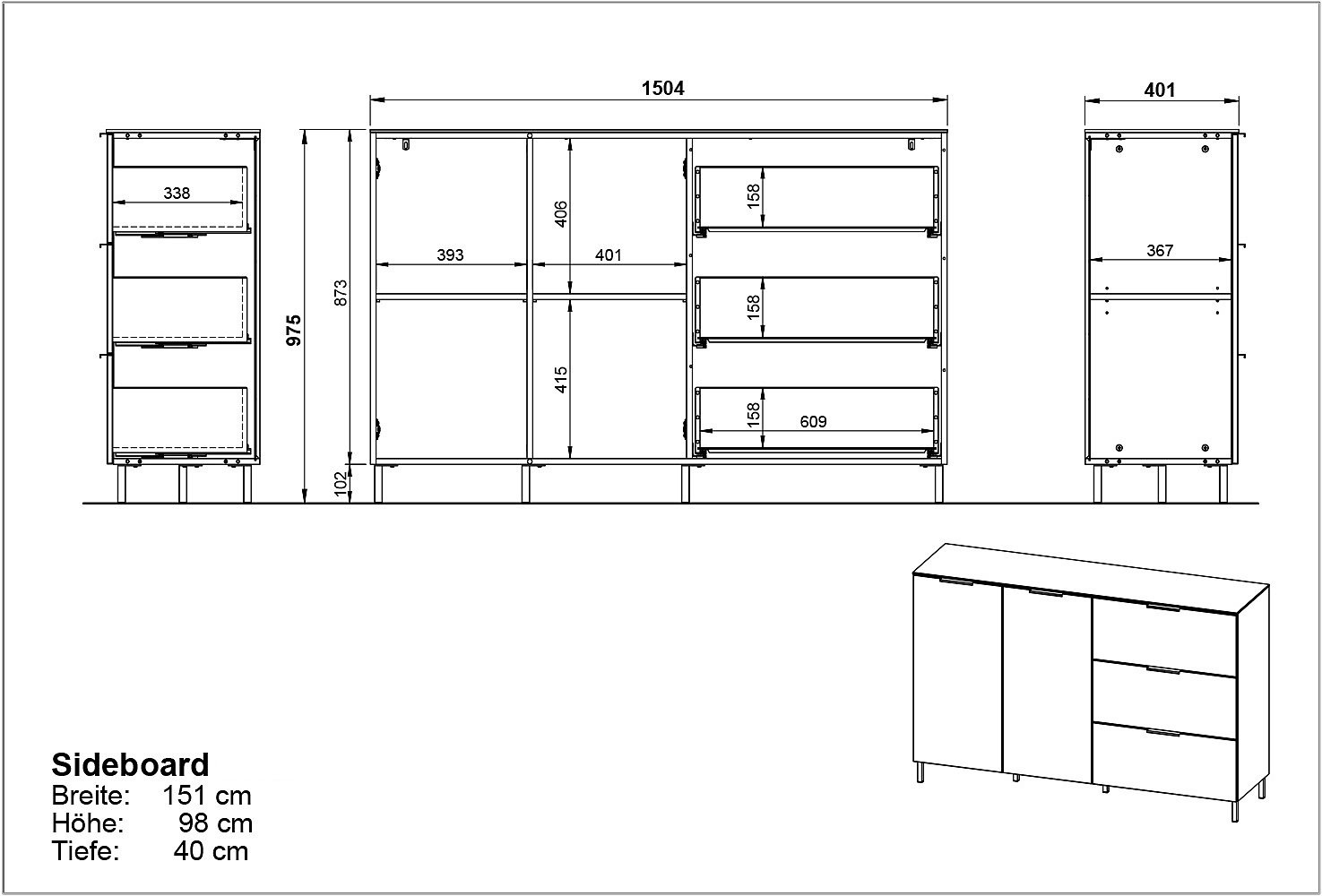 OpacaIn truciolatoTrattamento della superficie: melaminaCon trama opacaVerdeLarghezza totale 151 cmAltezza totale 98 cmProfondità totale 40 cm