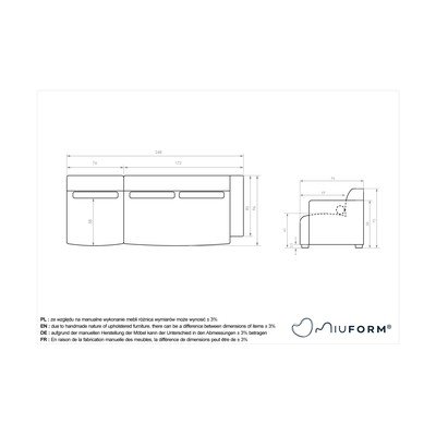 Con penisola a destraColor cremaA quattro postiLarghezza totale 248 cm