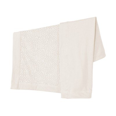 La coperta per bambini Seashells ha un fronte realizzato all'80% in mussola sostenibile e traspirante e al 20% in poliestere (punti di spugna). Il rovescio è in 100% mussola di cotone.