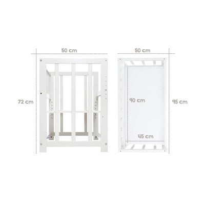 90x45 cmCon altezza regolabile/co-sleepingCon materasso inclusoIn MDFTrattamento della superficie: verniciatura colorataBianca