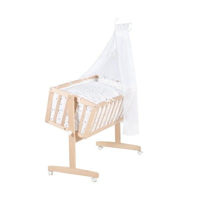 I tessuti della culla sono realizzati al 100% in cotone senza sostanze nocive e offrono un clima ottimale per il sonno. Il set di biancheria da letto è composto da una federa (40 x 35 cm) e da un copripiumino (80 x 80 cm). Il copripiumino per neonati è realizzato in fibra climatica traspirante e termoregolante.