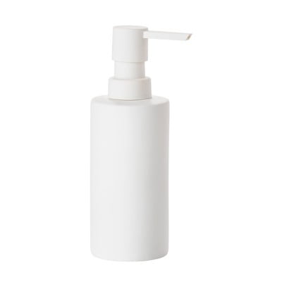 Materiale opaco e vellutato molto bello, design semplice. In realtà il dispenser è ancora più bello che in foto.