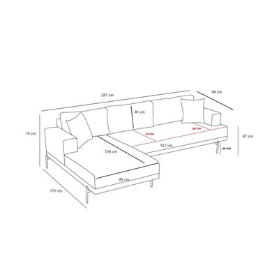 Con penisola a destra/con chaise loungeColor antraciteA quattro postiLarghezza totale 287 cmProfondità totale 171 cmProfondità della seduta 60 cm