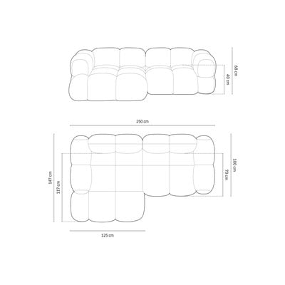 Con penisola a sinistra/con chaise lounge, azzurro, a tre posti, larghezza totale 250 cm