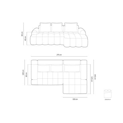Con rivestimento in vellutoAllungabile/con contenitoreCon penisola a destra/con chaise loungeBeigeA quattro postiLarghezza totale 275 cm