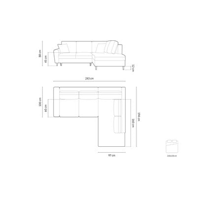 Divano angolare KyotoCon rivestimento in velluto, allungabile/con contenitore, con penisola a destra/a L, beige, a quattro posti, larghezza totale 243 cm