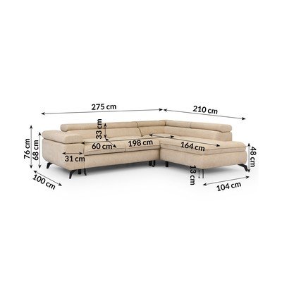 Con rivestimento in cinigliaReclinabile/allungabile/con contenitoreCon penisola a destra/a LBeigeAdatto per animali/antimacchiaA quattro postiLarghezza totale 275 cm
