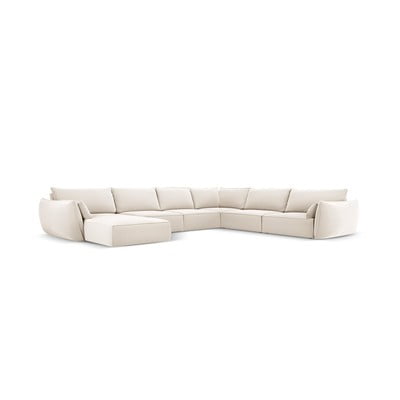 Divano angolare beige (con penisola a destra/a U) con rivestimento in velluto Vanda – Mazzini Sofas
