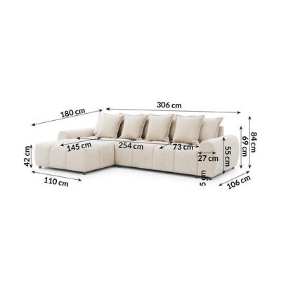 Divano angolare beige (con penisola a destra/con chaise lounge) Albane – Ropez