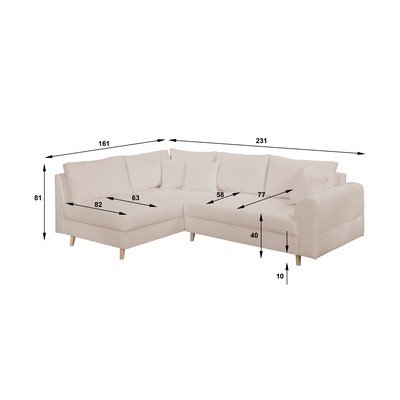 Con rivestimento in bouclé, con penisola a sinistra/a L, beige, a tre posti, larghezza totale 231 cm
