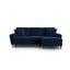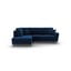 Divano angolare KyotoCon rivestimento in velluto, allungabile/con contenitore, con penisola a sinistra/a L, blu, a quattro posti, larghezza totale 243 cm