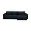 Divano angolare KapuaCon rivestimento in velluto, allungabile/con contenitore, con penisola a destra/con chaise lounge, blu scuro, a quattro posti, larghezza totale 278 cm
