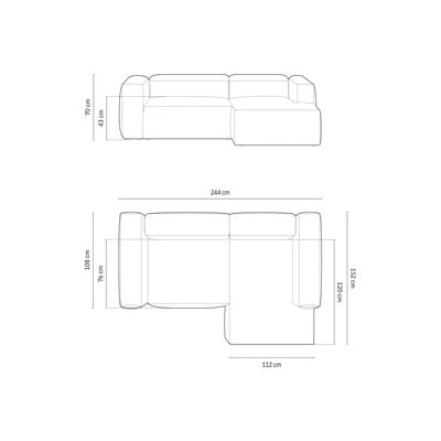 Con rivestimento in velluto a coste, con penisola a destra/con chaise lounge, blu scuro, a tre posti, larghezza totale 244 cm