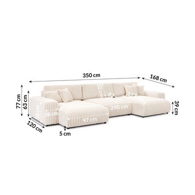 Con rivestimento in velluto a costeAllungabile/con contenitoreA UColor cremaIdrorepellente/antimacchiaA cinque o più postiLarghezza totale 350 cm