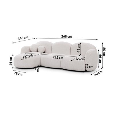 Con rivestimento in boucléCon penisola a sinistra/con chaise loungeColor cremaIdrorepellente/antimacchiaA quattro postiLarghezza totale 268 cm