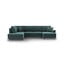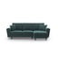 Divano angolare KyotoCon rivestimento in velluto, allungabile/con contenitore, con penisola a destra/a L, color petrolio, a quattro posti, larghezza totale 243 cm