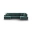 Divano angolare KyotoCon rivestimento in velluto, allungabile/con contenitore, con penisola a destra/a L, color petrolio, a quattro posti, larghezza totale 243 cm