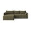Divano angolare MokuCon rivestimento in ciniglia, allungabile/con contenitore, con penisola a sinistra/con chaise lounge, color terracotta, idrorepellente, a quattro posti, larghezza totale 260 cm