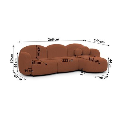 Con rivestimento in boucléCon penisola a destra/con chaise loungeColor terracottaIdrorepellente/antimacchiaA quattro postiLarghezza totale 268 cm