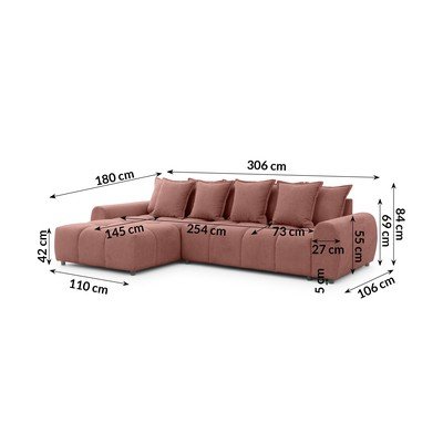 Con penisola a sinistra/con chaise loungeColor terracottaIdrorepellente/antimacchiaA quattro postiLarghezza totale 306 cm