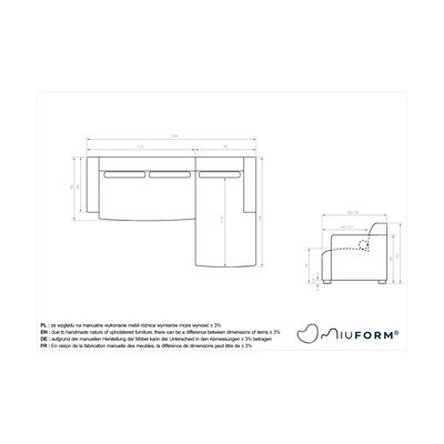 Con penisola a destra/con chaise loungeColor cremaA tre postiLarghezza totale 264 cm