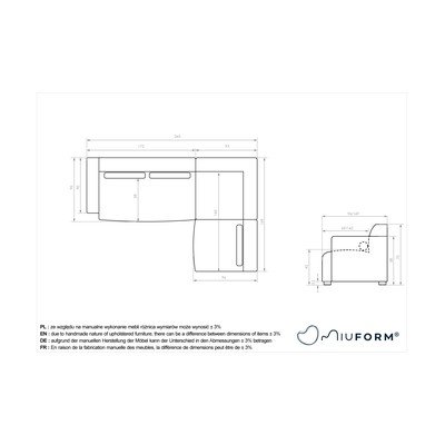 Con penisola a destra/a LVerdeA quattro postiLarghezza totale 265 cm